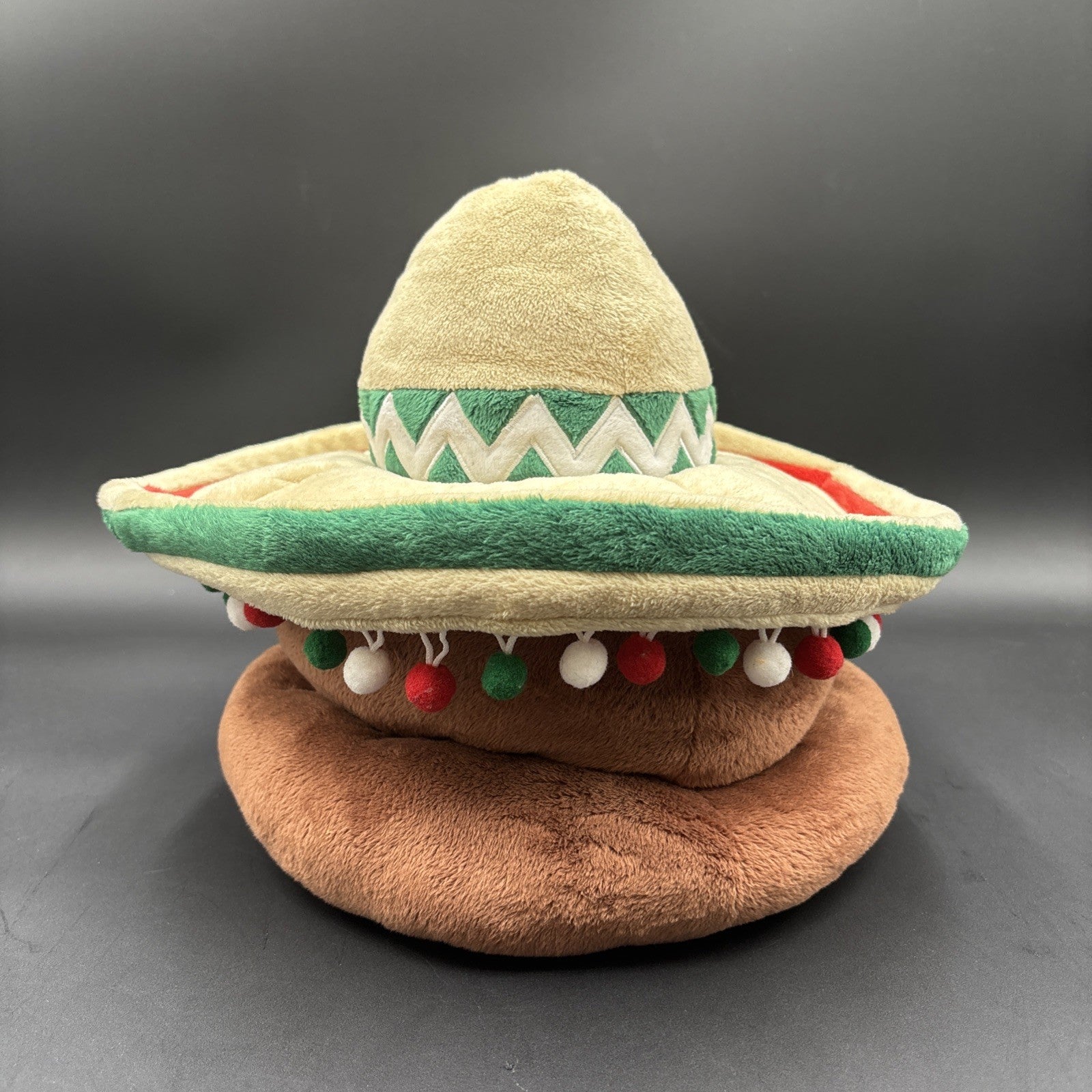 Rare Six Flags Poop Emoji Hat Plush With Sombrero & Mustache Mexican Style