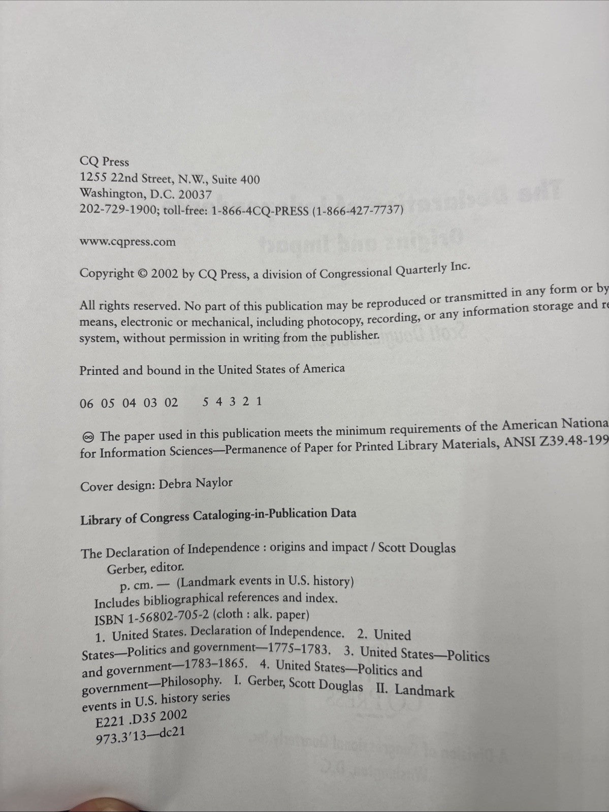 "The Declaration of Independence: Origins and Impact" by Scott Douglas Gerber is a comprehensive textbook published by CQ Press in... Read more